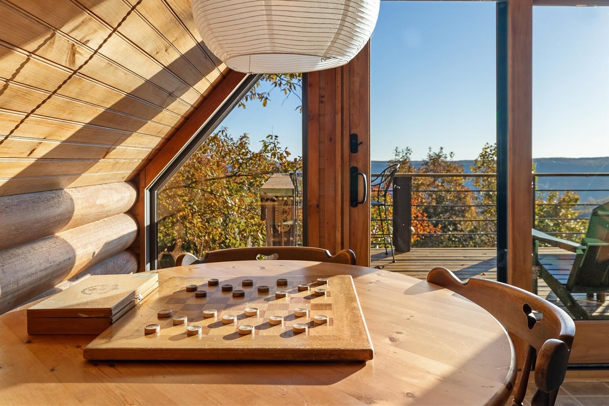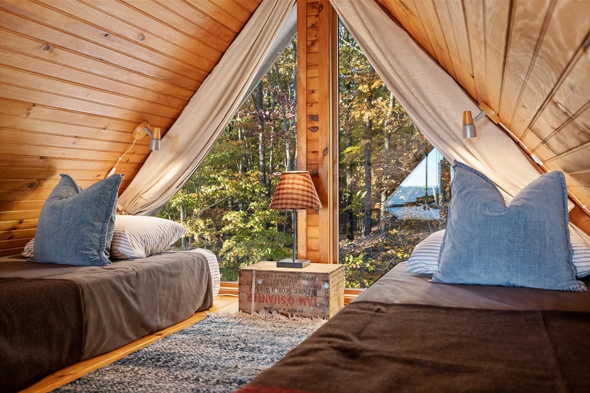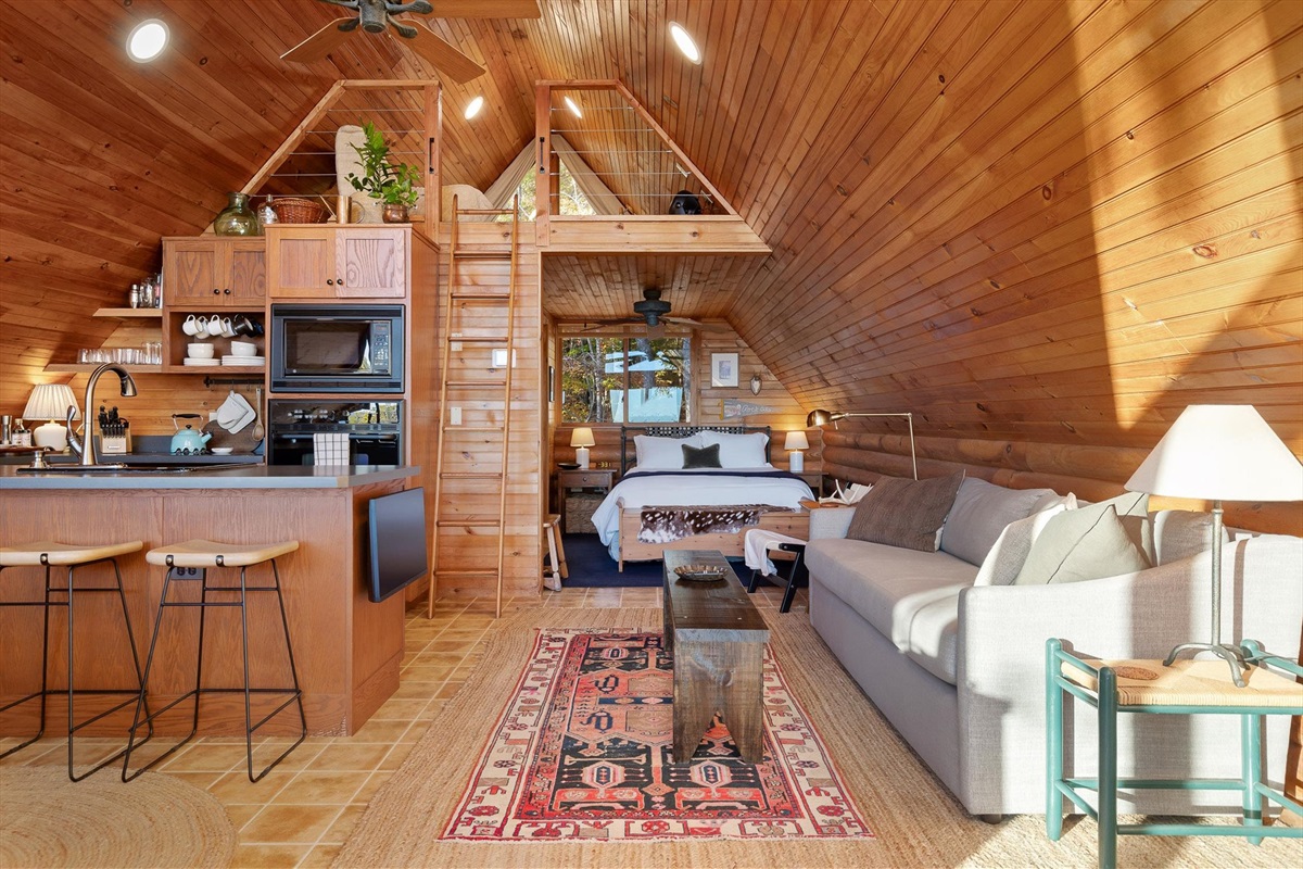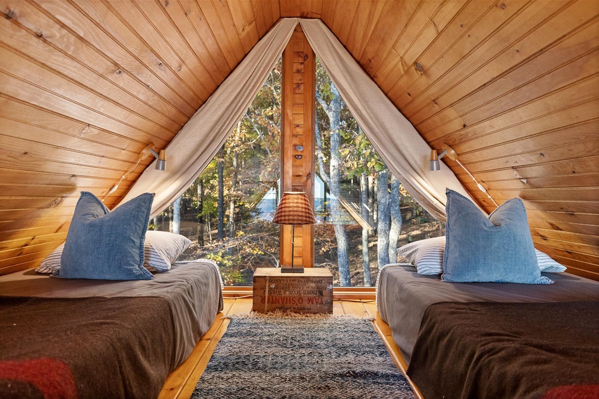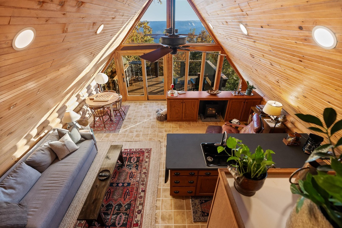 Welcome to Heeler’s Ridge, a cozy A-frame hideaway perched along the ridgeline, surrounded by whispering hardwoods and sweeping valley views. Tucked at the end of a quiet drive and embraced by nature, this cabin was made for slow mornings, starry nights, and reconnecting with what matters most. Step inside to warm wood interiors, vaulted ceilings, and sun-soaked glass walls that open directly to the treetops. Watch the sunrise spill across the valley from bed, sip coffee on the deck, and spend unhurried time together playing board games, reading, or simply breathing in the stillness.The cabin’s open lofted layout, thoughtful furnishings, and cozy seating spaces create a welcoming atmosphere perfect for couples, solo retreats, and creative escapes.