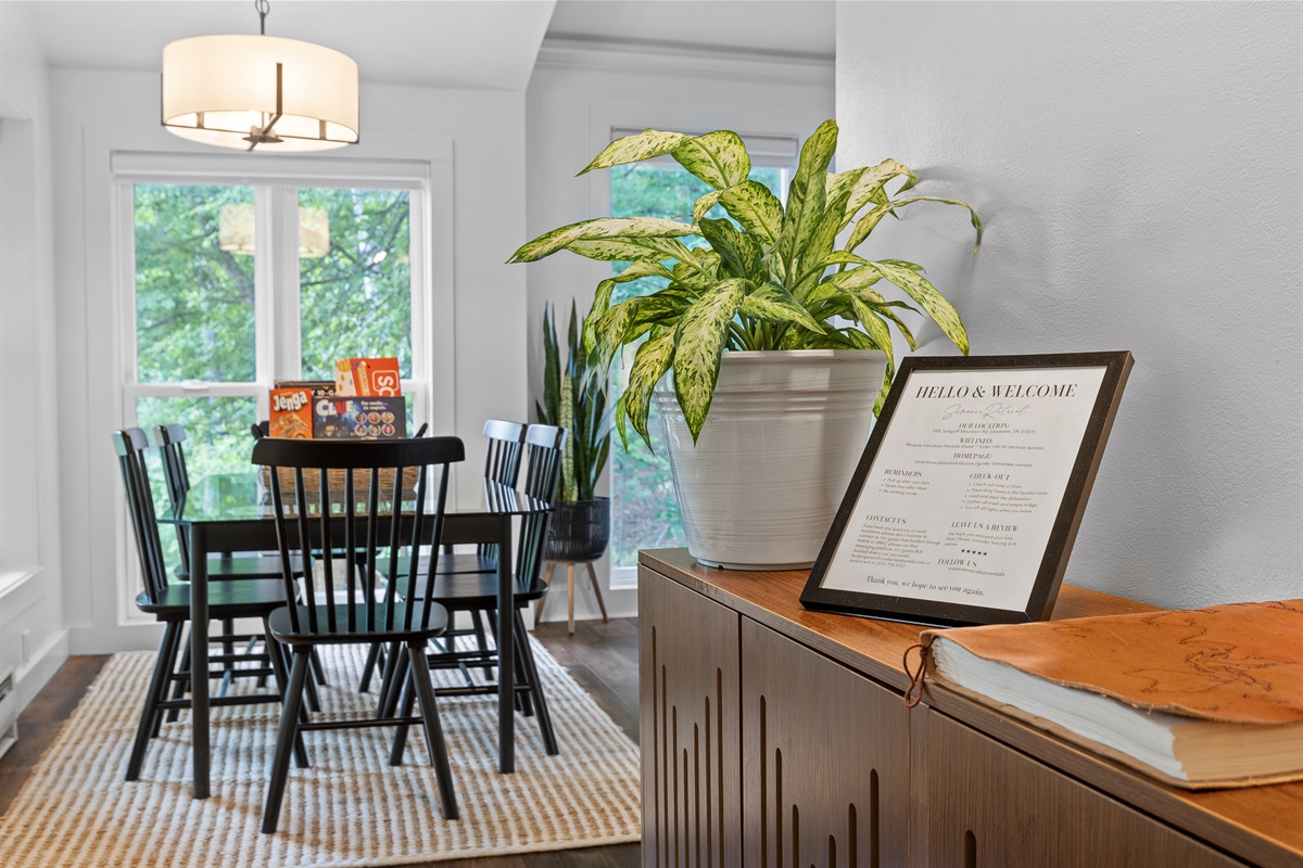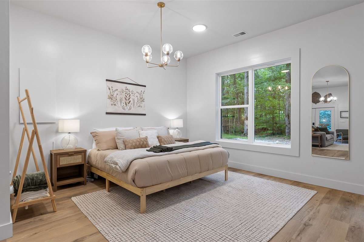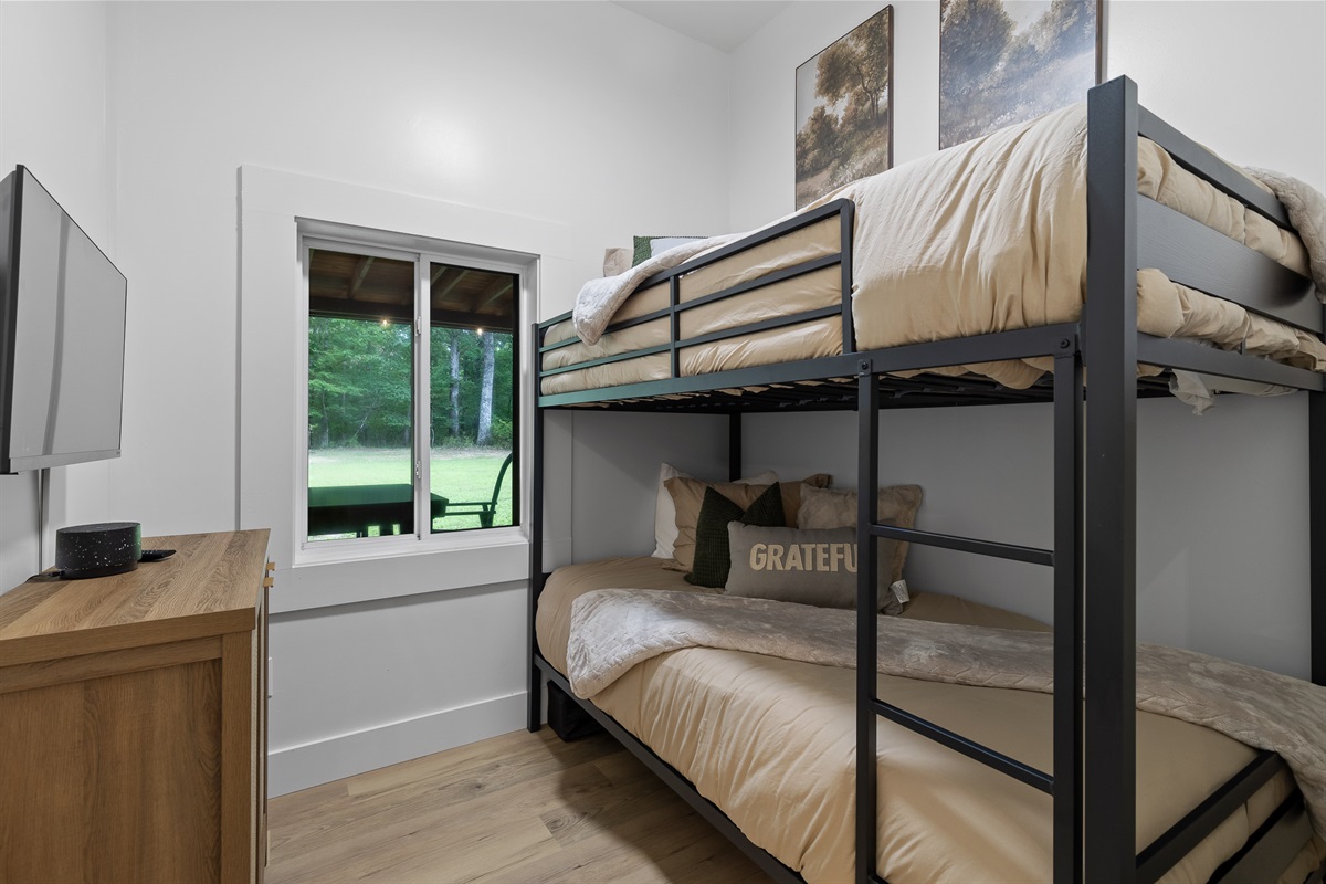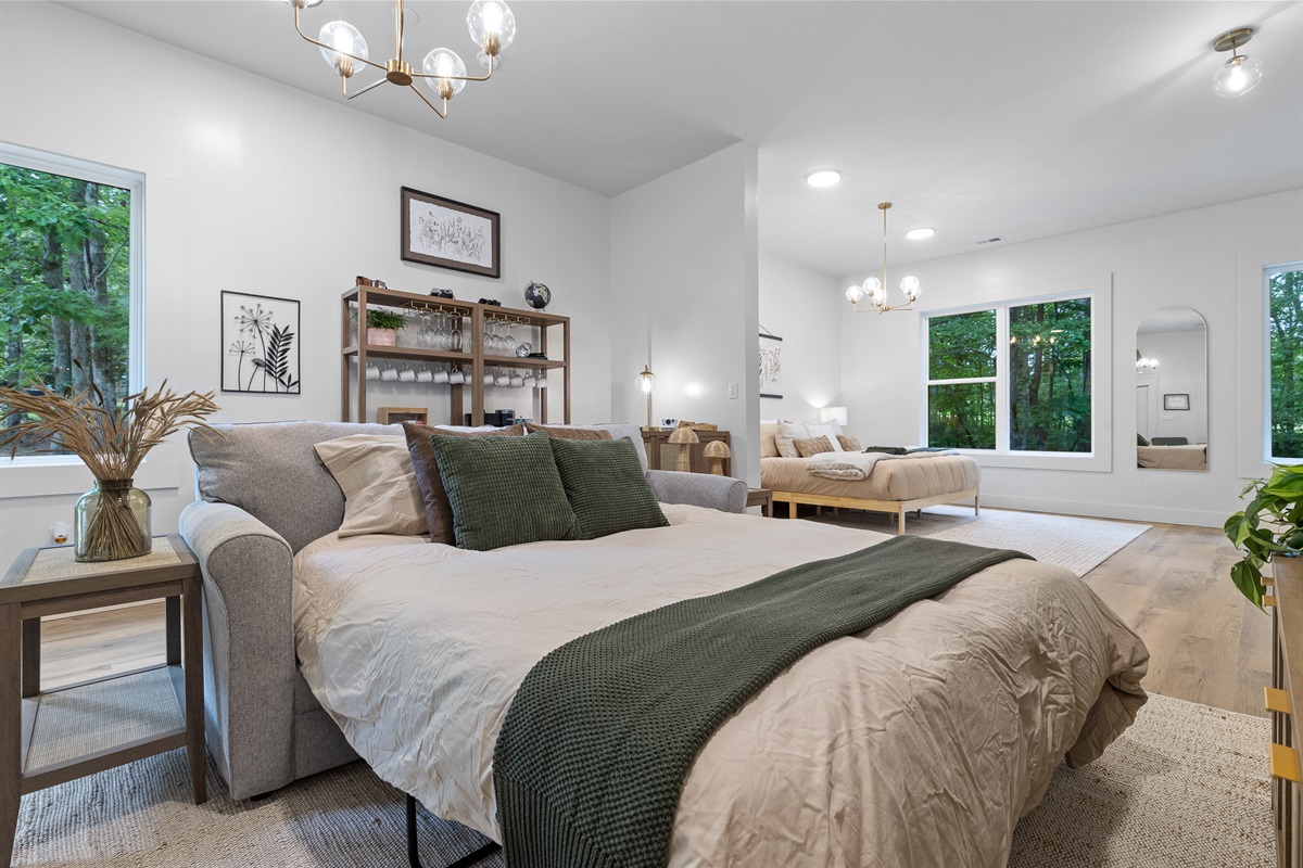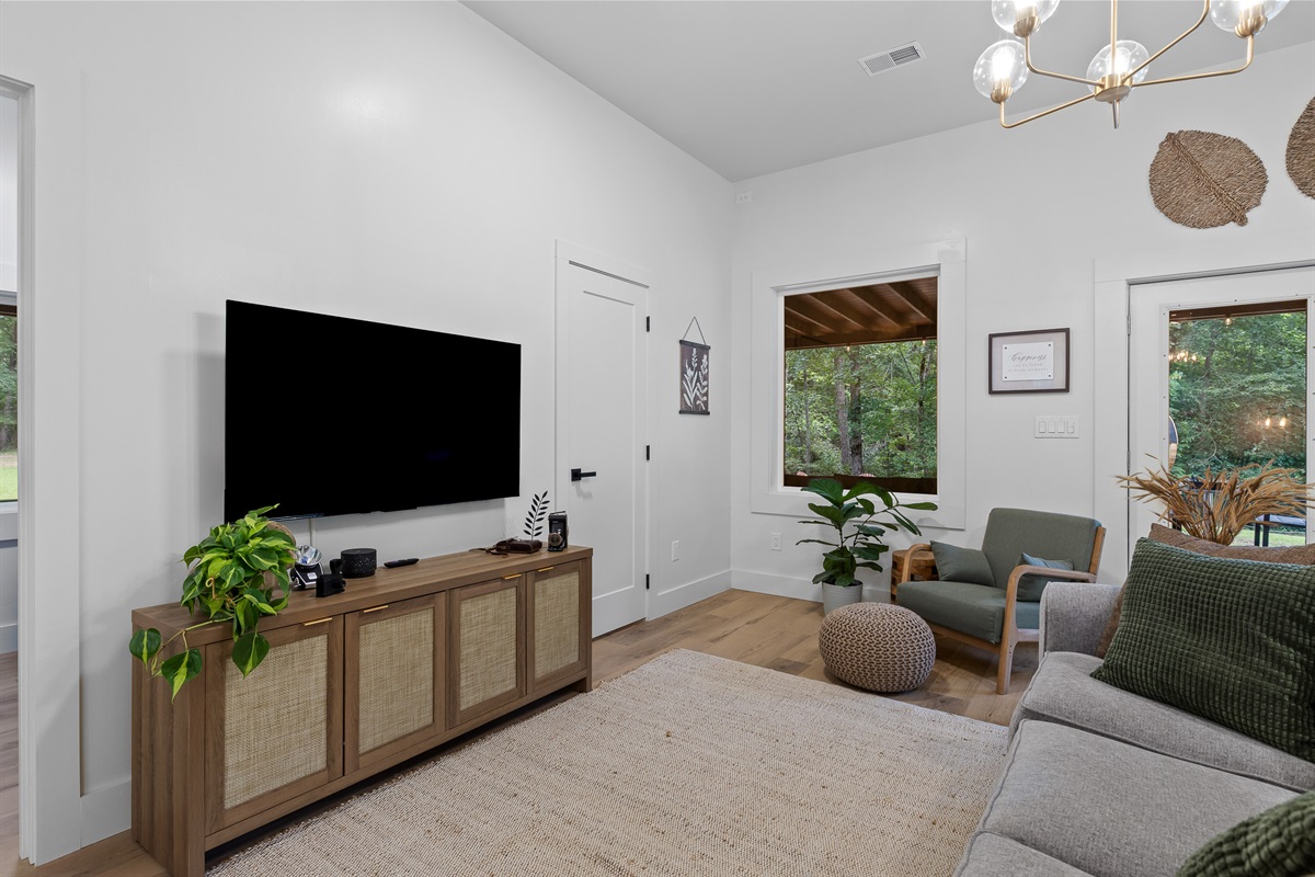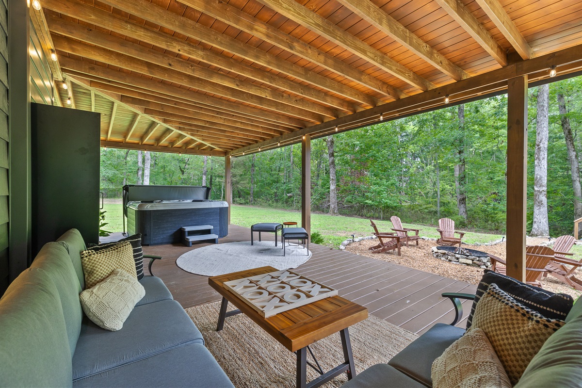 Escape to Little Moments, a tranquil tiny home tucked into the woods just 10 minutes from the University of the South. Set beside a serene pond and surrounded by towering trees, this private retreat blends comfort, nature, and a touch of luxury. Inside, the home comfortably sleeps up to 6 guests with king bed, a cozy queen sleeper sofa, and twin bunk beds—perfect for families, couples, or small groups. The fully equipped kitchen is ready for home-cooked meals, and large windows fill the space with natural light and forest views. Step onto the spacious covered porch to grill dinner, gather at the outdoor dining table, or simply listen to the sounds of nature. End your day soaking in the covered hot tub (seats 6), unwinding in the private steam sauna, or refreshing in the outdoor shower after a hike or campus visit. Whether you’re exploring Sewanee, attending a special event, or seeking a peaceful escape, Little Moments offers the perfect setting to relax, recharge, and make memories.