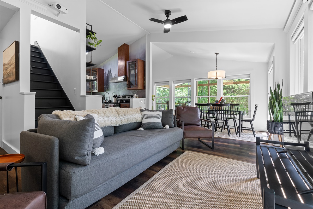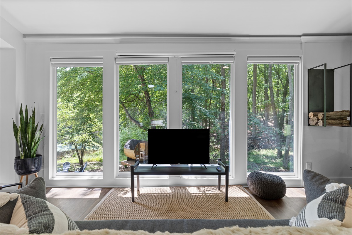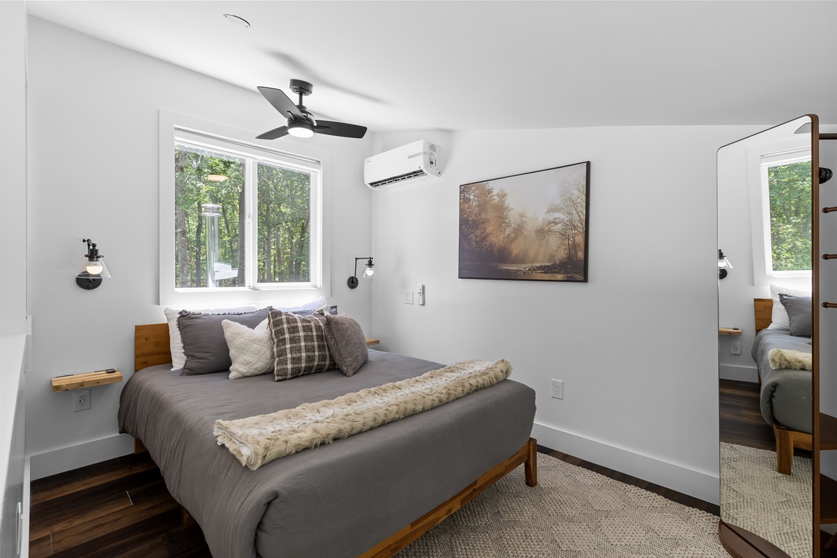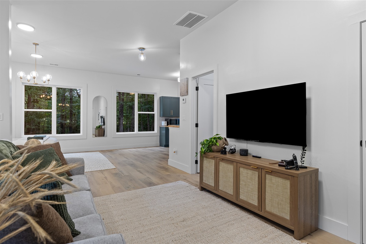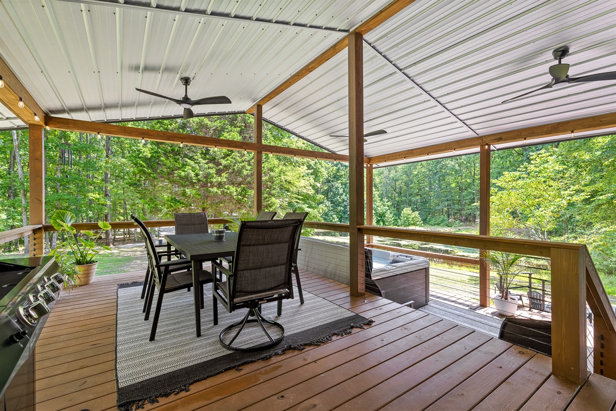 Escape to Little Moments, a tranquil tiny home tucked into the woods just 10 minutes from the University of the South. Set beside a serene pond and surrounded by towering trees, this private retreat blends comfort, nature, and a touch of luxury. Inside, the home comfortably sleeps up to 6 guests with king bed, a cozy queen sleeper sofa, and twin bunk beds—perfect for families, couples, or small groups. The fully equipped kitchen is ready for home-cooked meals, and large windows fill the space with natural light and forest views. Step onto the spacious covered porch to grill dinner, gather at the outdoor dining table, or simply listen to the sounds of nature. End your day soaking in the covered hot tub (seats 6), unwinding in the private steam sauna, or refreshing in the outdoor shower after a hike or campus visit. Whether you’re exploring Sewanee, attending a special event, or seeking a peaceful escape, Little Moments offers the perfect setting to relax, recharge, and make memories.