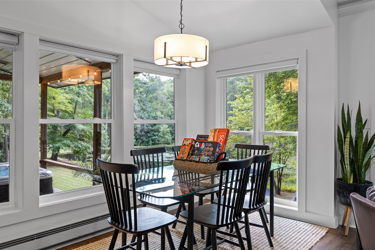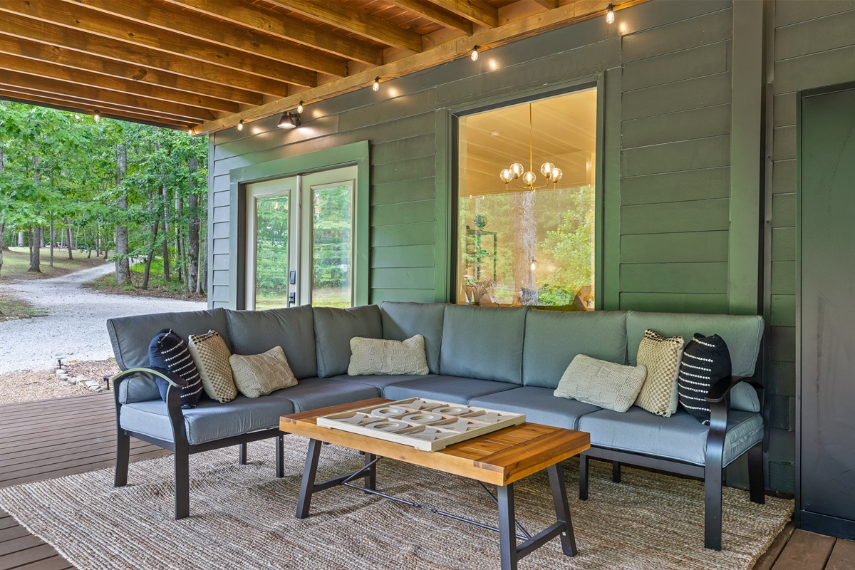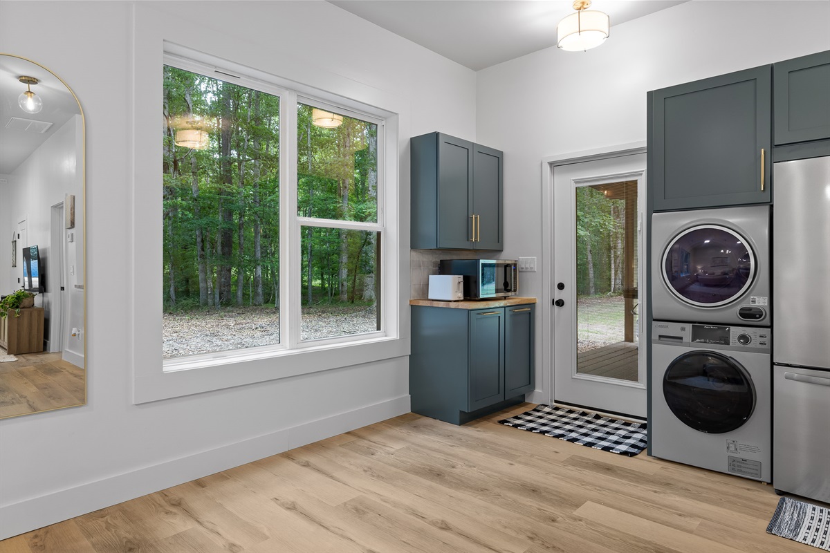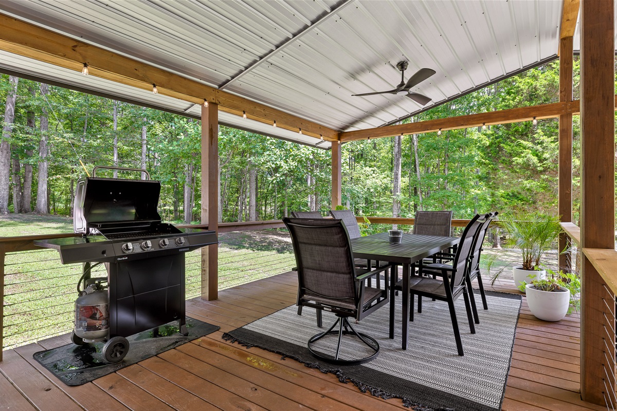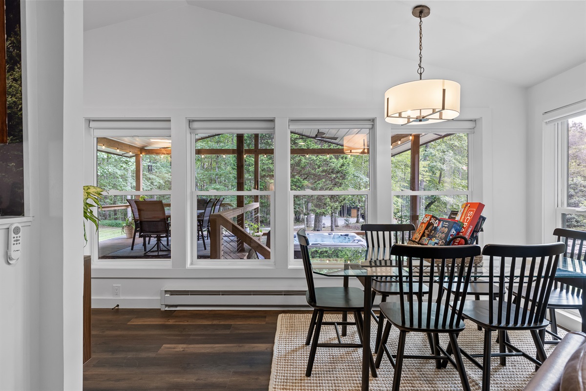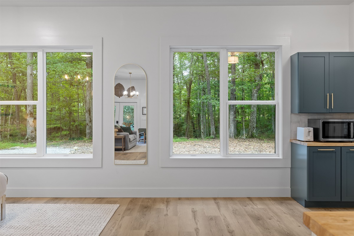 Escape to Little Moments, a tranquil tiny home tucked into the woods just 10 minutes from the University of the South. Set beside a serene pond and surrounded by towering trees, this private retreat blends comfort, nature, and a touch of luxury. Inside, the home comfortably sleeps up to 6 guests with king bed, a cozy queen sleeper sofa, and twin bunk beds—perfect for families, couples, or small groups. The fully equipped kitchen is ready for home-cooked meals, and large windows fill the space with natural light and forest views. Step onto the spacious covered porch to grill dinner, gather at the outdoor dining table, or simply listen to the sounds of nature. End your day soaking in the covered hot tub (seats 6), unwinding in the private steam sauna, or refreshing in the outdoor shower after a hike or campus visit. Whether you’re exploring Sewanee, attending a special event, or seeking a peaceful escape, Little Moments offers the perfect setting to relax, recharge, and make memories.