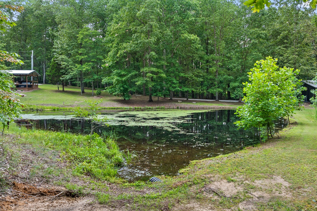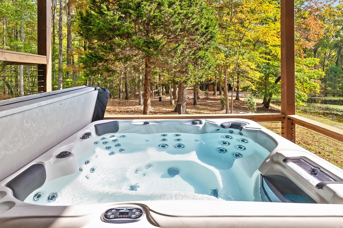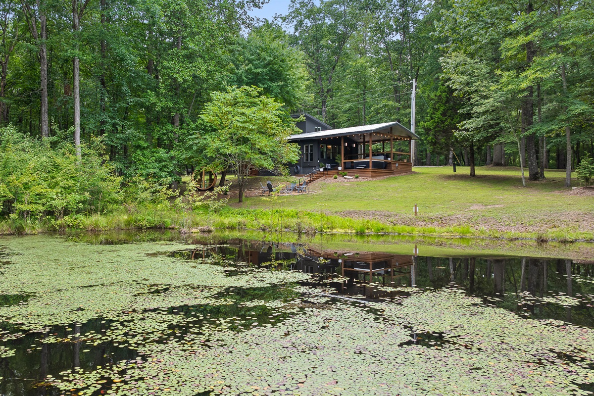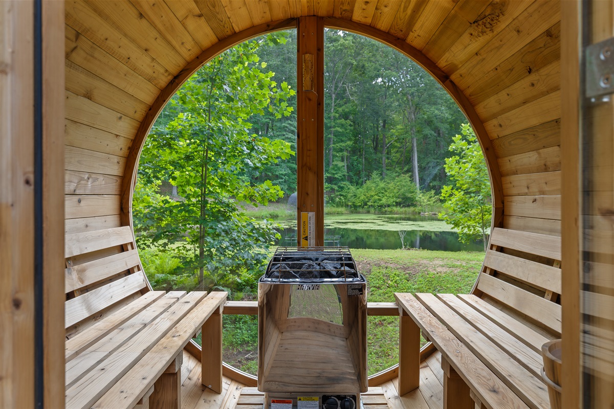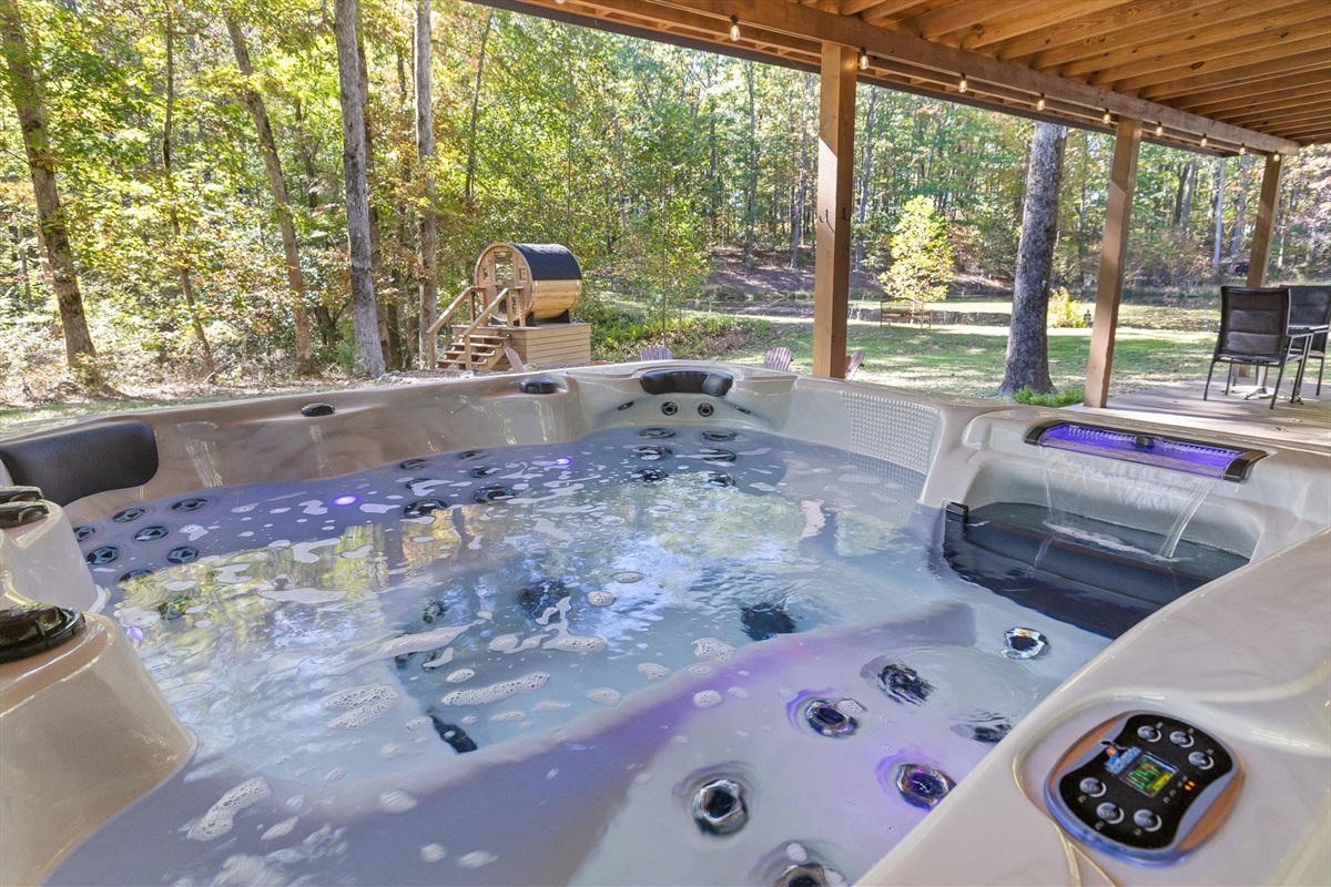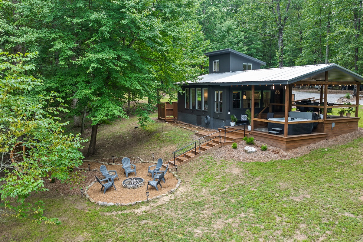 Escape to this serene tiny home tucked away in the woods just 10 minutes from the University of the South. Surrounded by trees and nestled beside a peaceful pond, this private retreat offers the perfect blend of comfort, nature, and relaxation. Inside, the home sleeps up to 6 guests with a private queen bedroom, a cozy queen sleeper sofa, and twin bunk beds—ideal for families, couples, or small groups. The fully equipped kitchen has everything you need to cook and dine in, while large windows bring in natural light and forest views. Step outside to a spacious covered porch featuring a gas grill and outdoor dining table—perfect for enjoying your meals al fresco. Unwind in the covered hot tub (seats 6), rejuvenate in the private steam sauna, or refresh in the outdoor shower after a day of hiking or exploring campus. Whether you're visiting Sewanee, attending a nearby event, or simply craving a peaceful getaway, this wooded retreat offers comfort, privacy, and a touch of luxury.