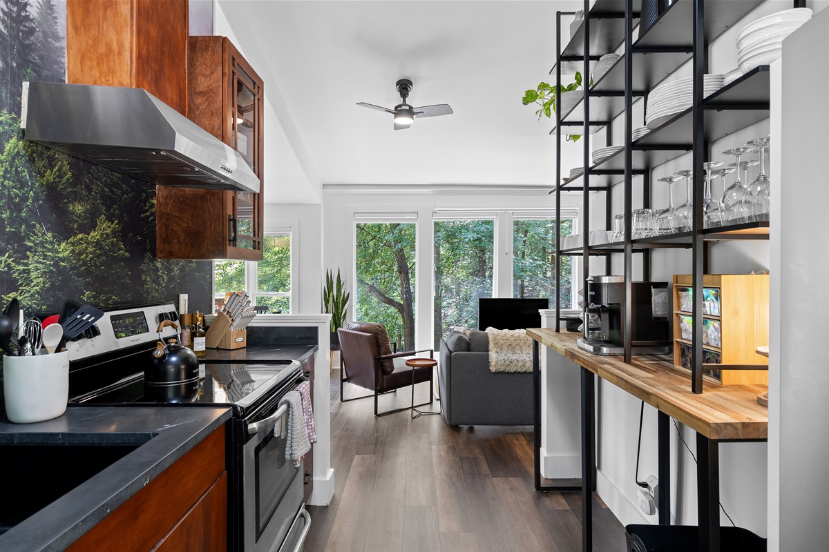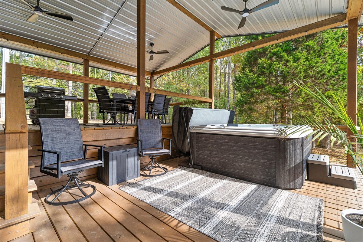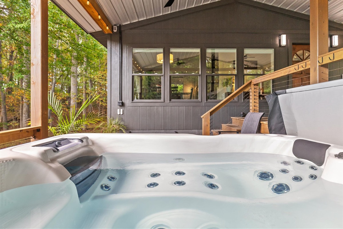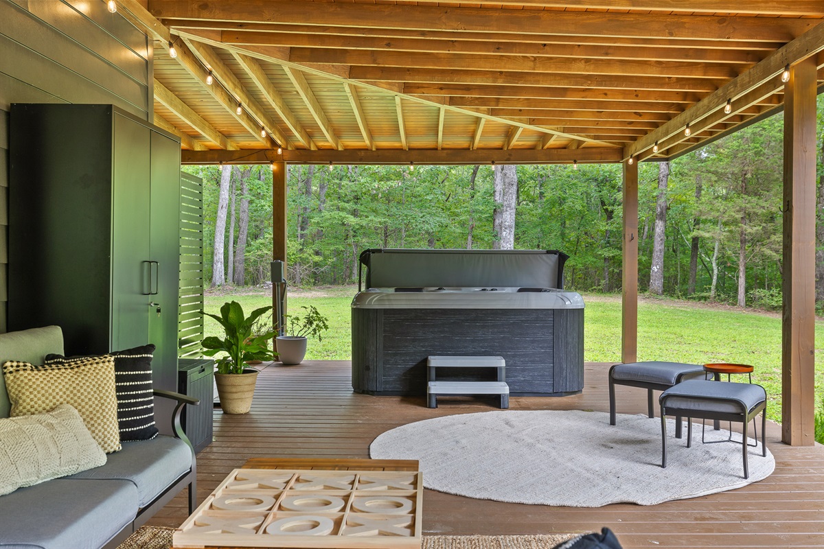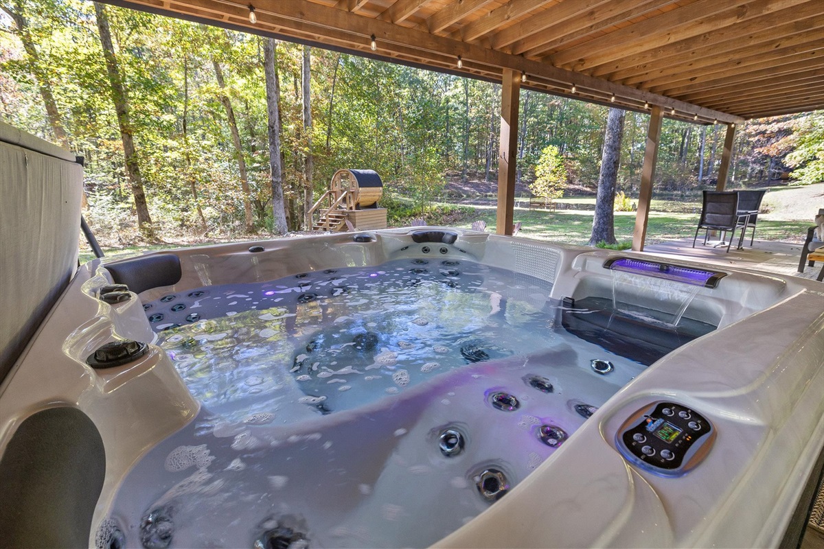 Escape to this serene tiny home tucked away in the woods just 10 minutes from the University of the South. Surrounded by trees and nestled beside a peaceful pond, this private retreat offers the perfect blend of comfort, nature, and relaxation. Inside, the home sleeps up to 6 guests with a private queen bedroom, a cozy queen sleeper sofa, and twin bunk beds—ideal for families, couples, or small groups. The fully equipped kitchen has everything you need to cook and dine in, while large windows bring in natural light and forest views. Step outside to a spacious covered porch featuring a gas grill and outdoor dining table—perfect for enjoying your meals al fresco. Unwind in the covered hot tub (seats 6), rejuvenate in the private steam sauna, or refresh in the outdoor shower after a day of hiking or exploring campus. Whether you're visiting Sewanee, attending a nearby event, or simply craving a peaceful getaway, this wooded retreat offers comfort, privacy, and a touch of luxury.